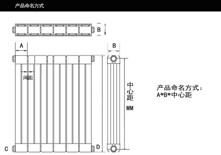 | 銅鋁復(fù)合散熱器 | 產(chǎn)品名稱、型號(hào) | 外形尺寸(高*寬*厚) | 鋁型材規(guī)格 | 中心距 | 散熱量W |